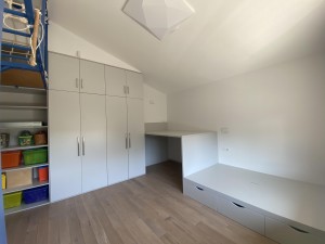 Двоповерховий будинок площею 176 кв.м, зведений у 2015 році з цегли з якісним утепленням, п’ять кімнат і два санвузли. На першому поверсі розташовані простора вітальня площею 20,5 кв.м, об'єднана з кухнею-столовою 18,5 кв.м із виходом на затишну терасу, світлий кабінет 12 кв.м, санвузол із душовою та технічне приміщення з інженерним обладнанням та сантехнікою. На другому поверсі – дві спальні по 16,5 кв.м, велика дитяча кімната 20 кв.м, творча майстерня 12 кв.м та ванна кімната. Планування продумане так, щоб кожен член родини мав власний простір.