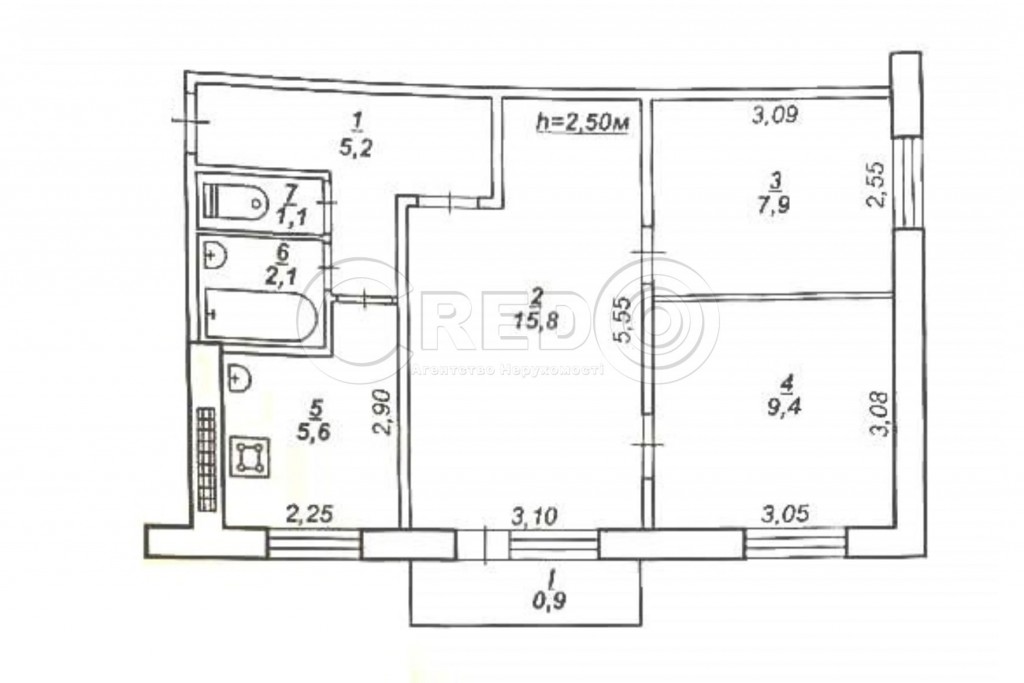 Про об’єкт: - Квартира розташована на 4/5-ти поверхового будинку. - Загальна площа 48 кв.м. - Житлова 33,1кв.м. - Кухня 5,6кв.м. - Висота Н - 2.50м.
