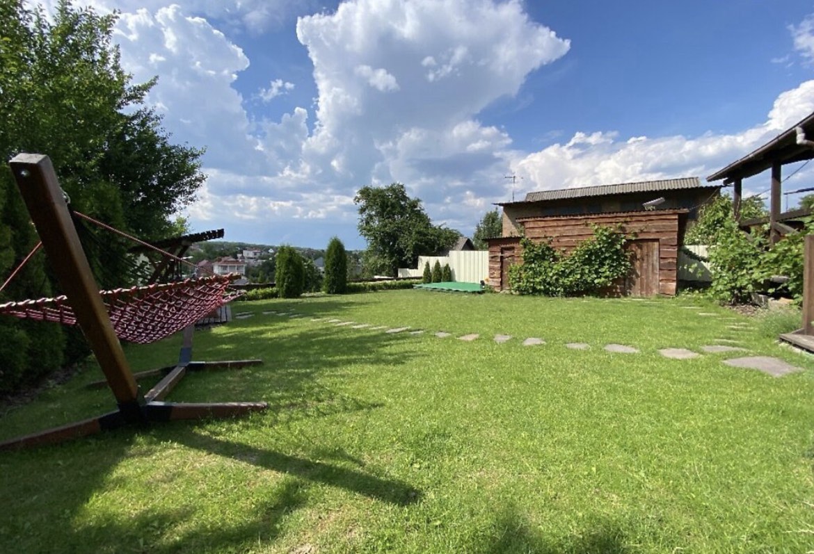 На доглянутій території — ландшафтний дизайн, альтанка з мангалом, зона барбекю та відпочинку, де панує затишок і гармонія.