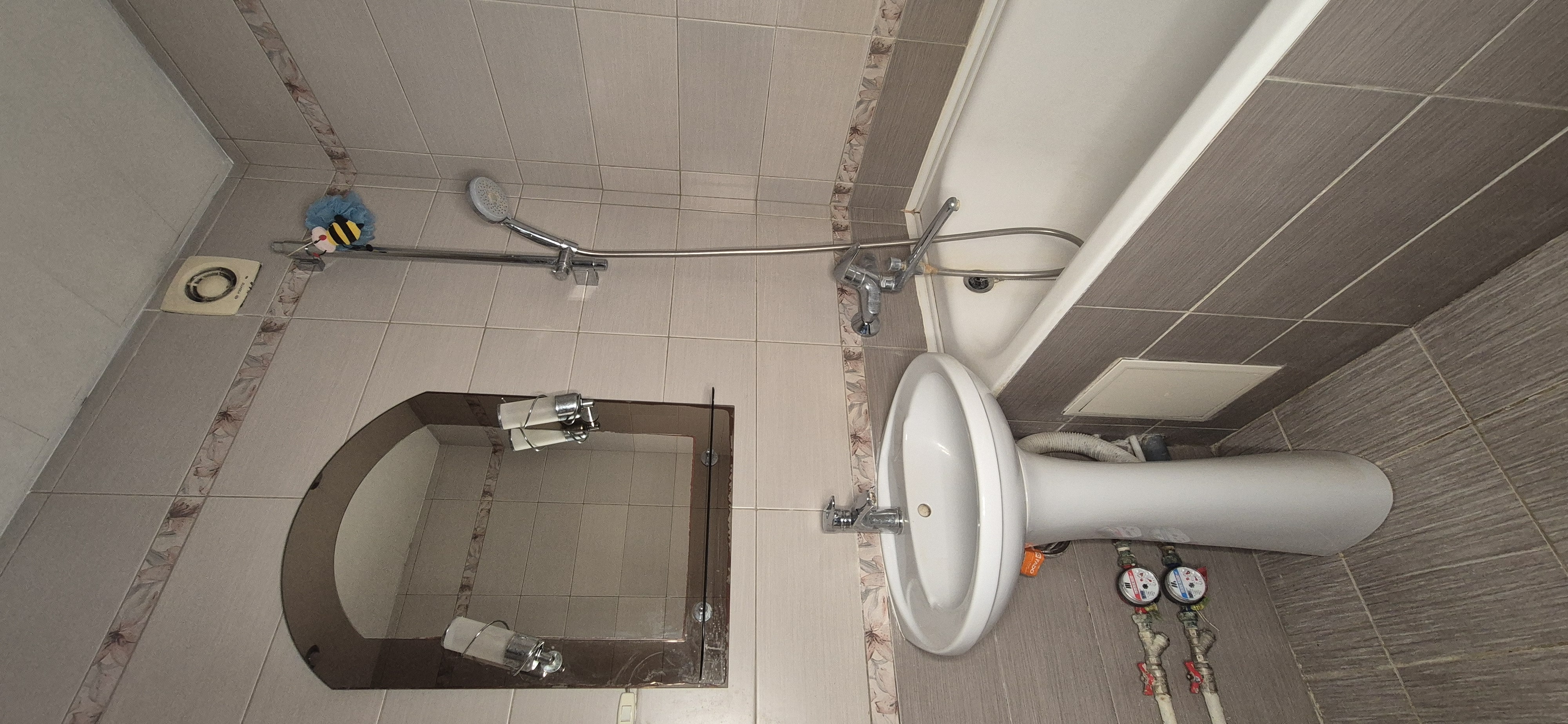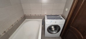 Санвузол роздільний у кахлі з ванною, пральною машиною.