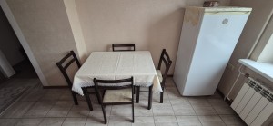 На кухні: вбудований гарнітур, обідній стіл, побутова техніка- холодильник, духова шафа, варильна поверхня (газова), витяжка та мийка.