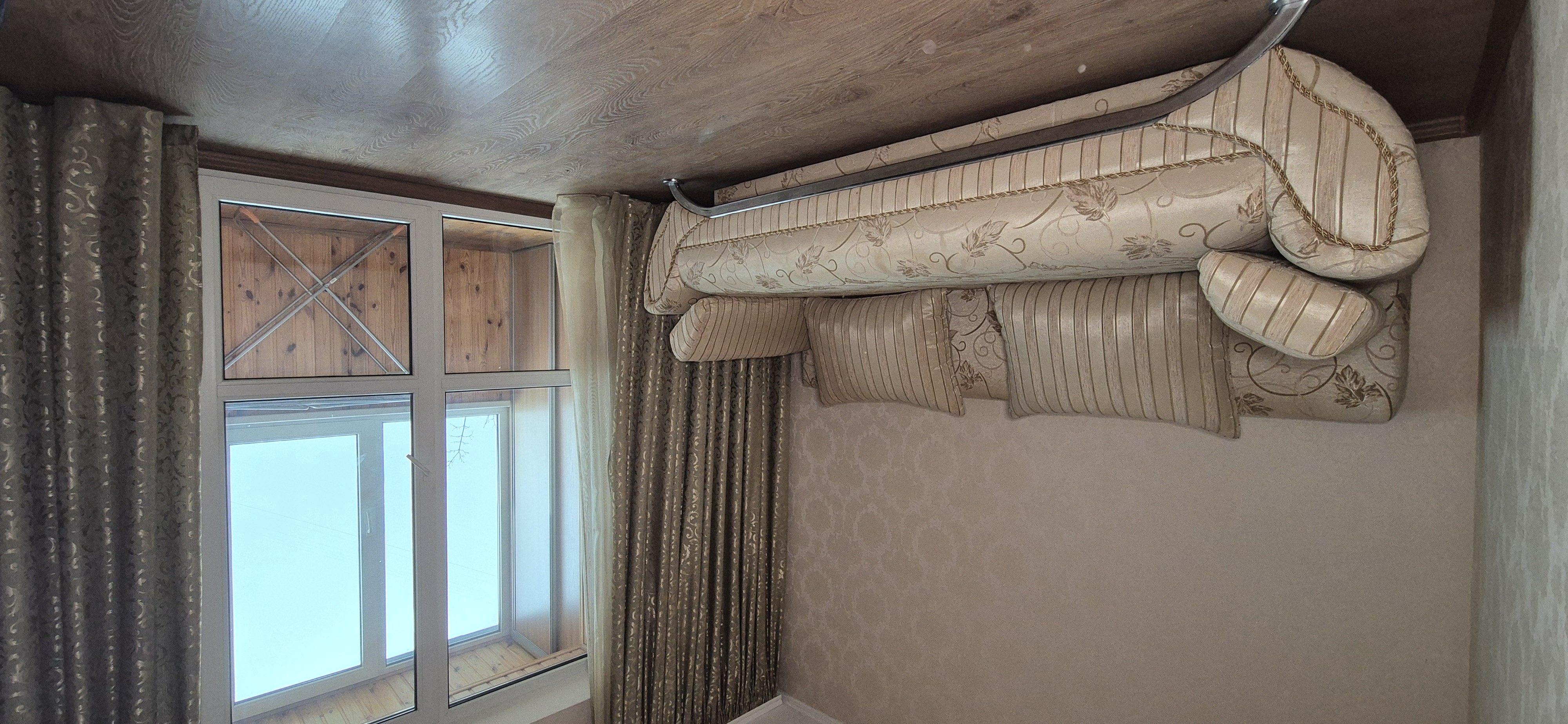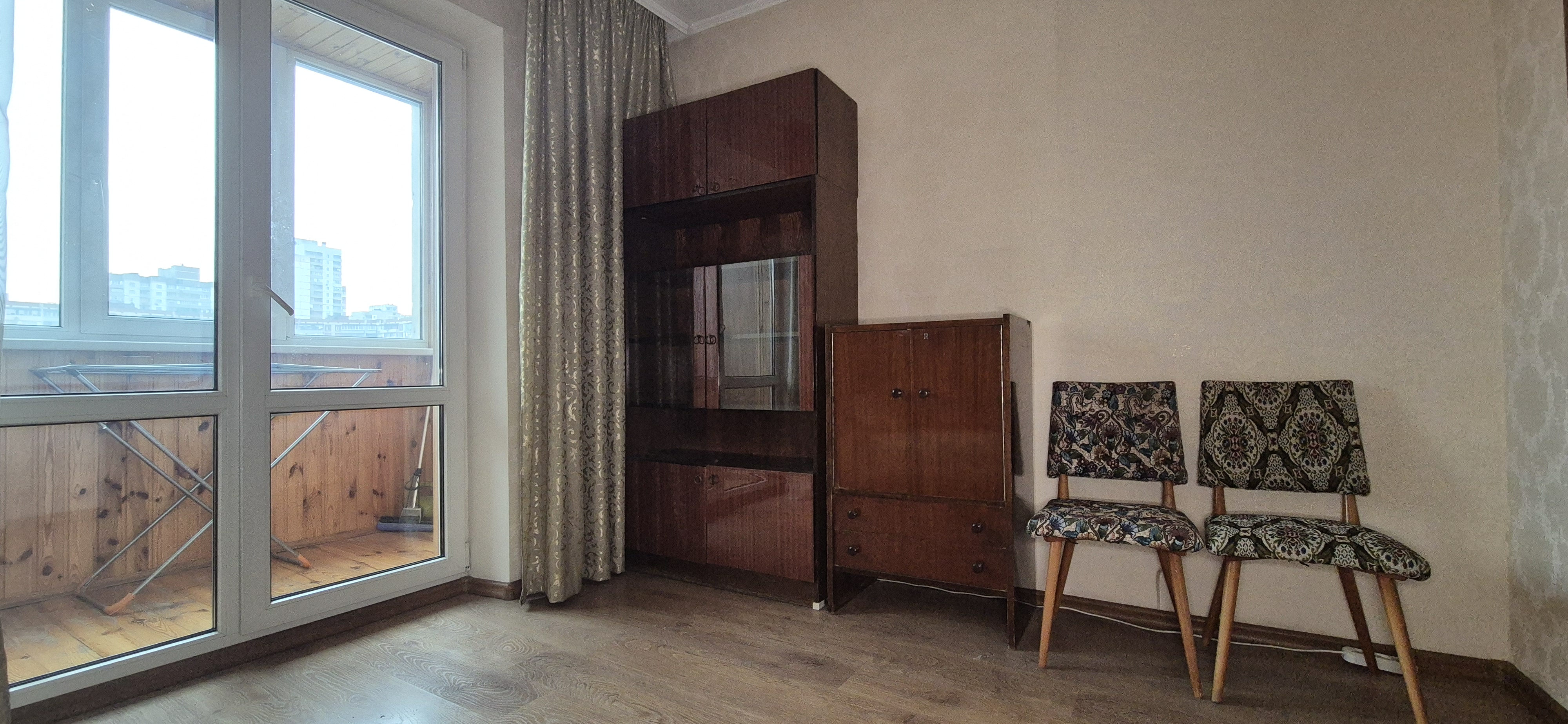 У першій спальні: диван розкладний, шафа, комод та вихід на лоджію засклену.