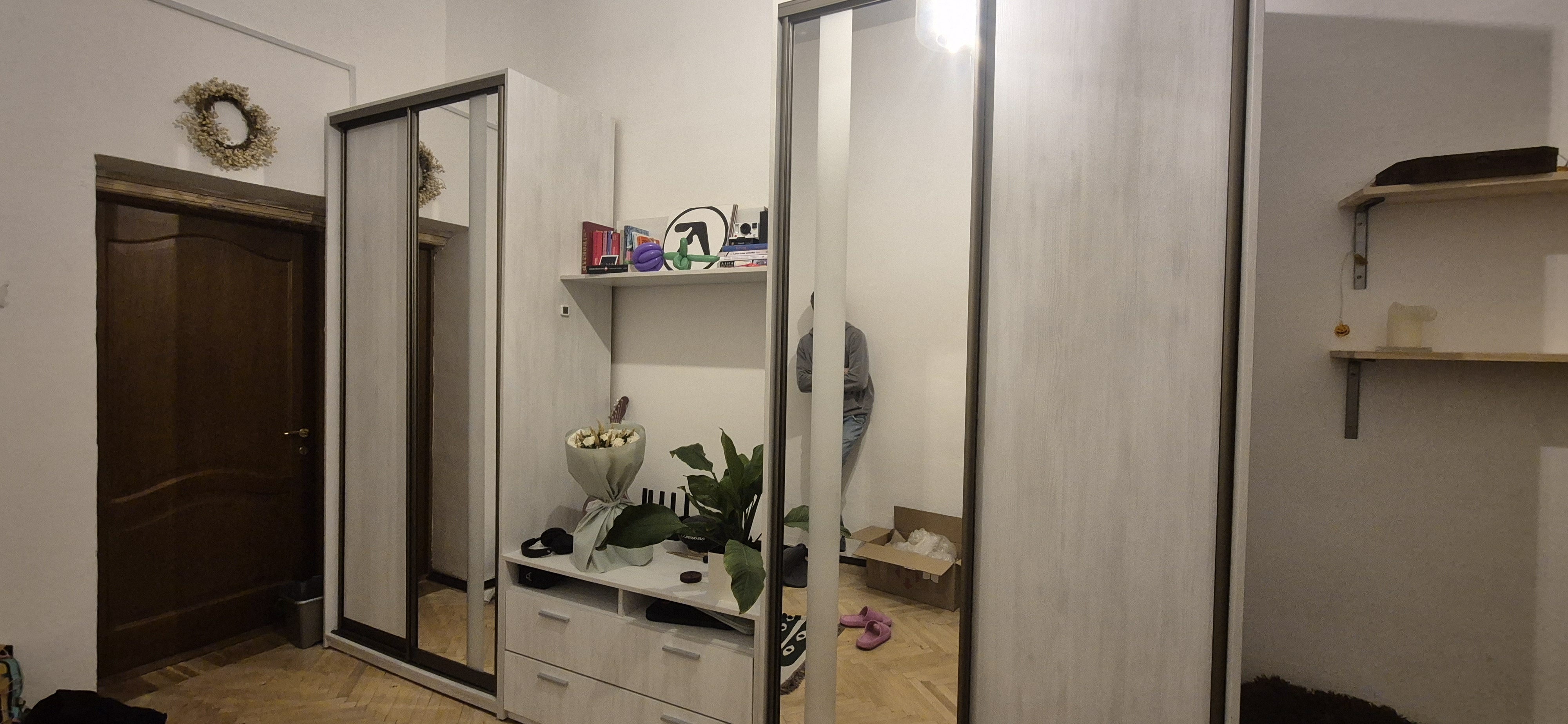 В квартирі частковий ремонт, склопакети, кондиціонер. Меблі (2 дивани, 3 шафи).