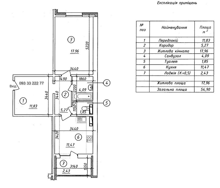 Загальна площа: 55 кв.м