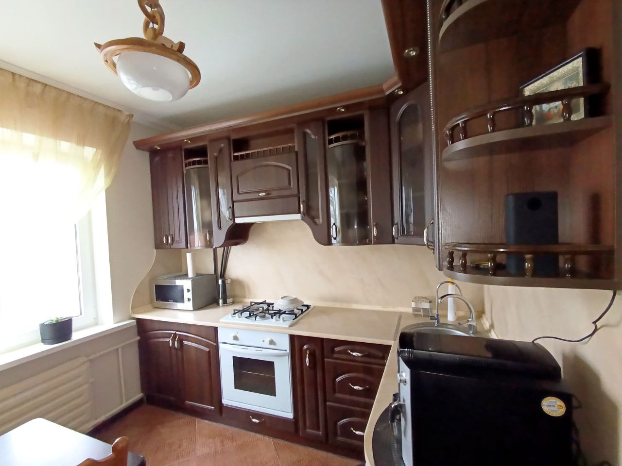 Панель (утеплена зовні), є тех. поверх теж утеплений. Не кутова. Вікна виходять не на дорогу. Південна сторона. Розвинена інфраструктура – школа, садочок, магазини (поруч два великих супермаркети і безліч маленьких магазинів), зупинка громадського транспорту, лікарня, пошта – усе під рукою. Квартира з хорошим ремонтом, робили для себе (все як на фото), квартира тепла і затишна з утепленою лоджією. Туалет з ванною об’єднали для збільшення простору. Кондиціонер. Висота стелі h=2.50 м.. Опалення – централізоване. На все лічильники. Зроблений капітальний ремонт в квартирі і даху з гарантією (утеплення даху): поміняна вся електропроводка на мідну; заміна труб; стіни – фарбовані, шпалери, декоративний камінь; підлога – керамічна плитка, ламінат, стеля – штукатурка, в одній кімнаті гіпсокартон, вікна – металопластик, міжкімнатні двері якісні, вхідні – якісні броньовані. В одній кімнаті зроблена в стелі led-підсвітка. LED-підсвітка робочої зони на кухні. Зроблений капітальний ремонт в санвузлі (встановлений якісний душовий бокс-джакузі). В квартирі залишається майже все: всі вмонтовані меблі, вся техніка (холодильник, пральна машина, душовий бокс, кондиціонер, …) окрім – духової шафи, микрохвильовки, кавової машини і телевізорів. Двір спокійний і затишний. Пропозиція від представника власника. Без комісії для покупця. Показ за попередньою домовленістю.