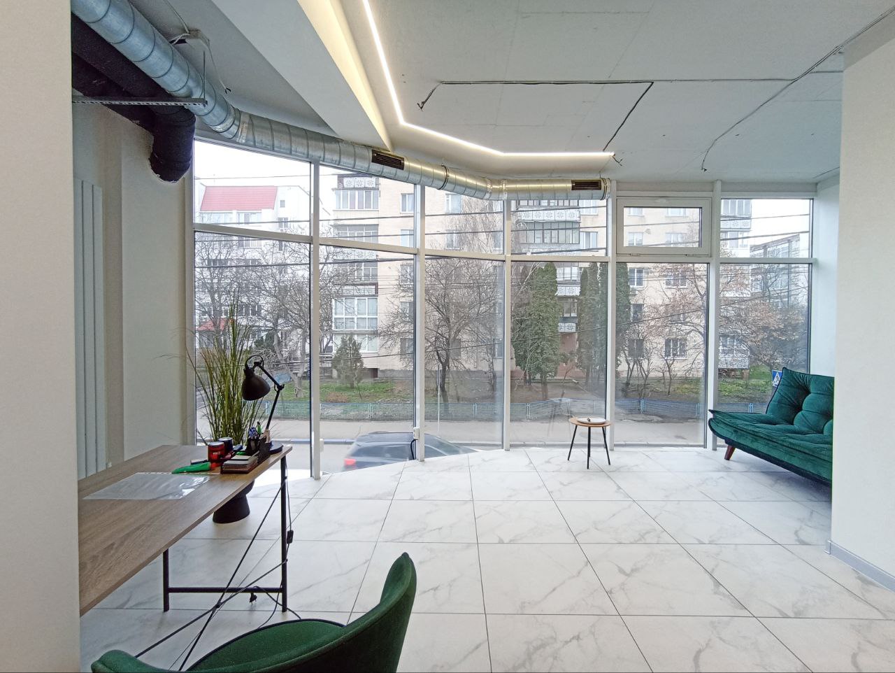 Вигідна локація - самісінький центр міста, працює ліфт. Бізнес центр новий та сучасний, повністю працюючий. Цілодобовий доступ. Світло 24/7. Панорамне фасадне вікно на всю ширину. Опалення - кондиціонер. Є також централізоване. В приміщенні є виводи на воду/каналізацію. Пропозиція від представника власника. Ключі на руках. Показ по домовленості.