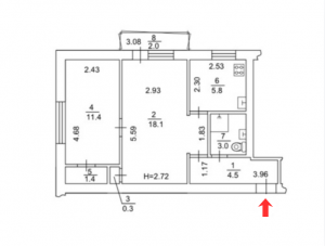 Загальна площа - 46.5 кв.м. Житлова площа - 29.5 кв.м. Кухня - 5.8 кв.м. Висота стелі - 2.72 м.