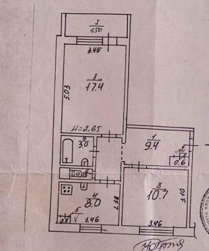 3 кімн., площа 67/40/7, поверх 3/5