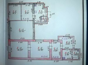состоящую из 2 комнат,на тех паспорте выделена другим цветом: Кухня 6.8,комнаты 14.9+14.2 Коридор 6.6 Котельная 4.1 Ванна 2.8 Общая 49.4 Высота 2.7 метра