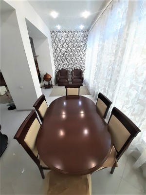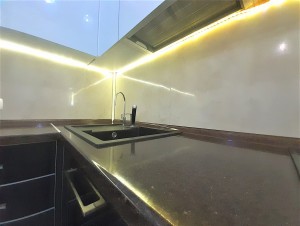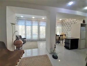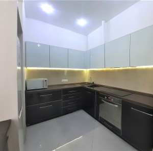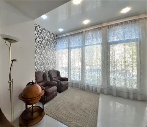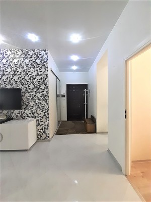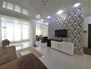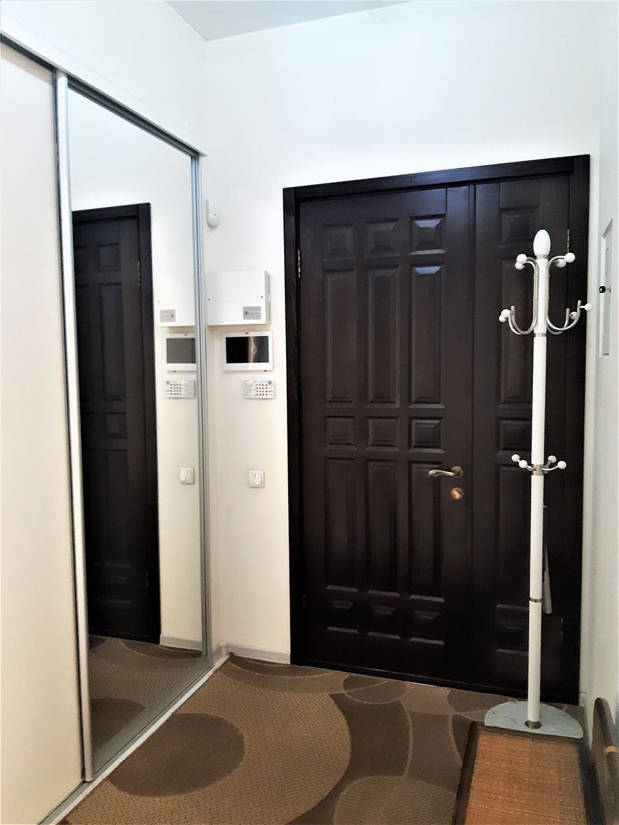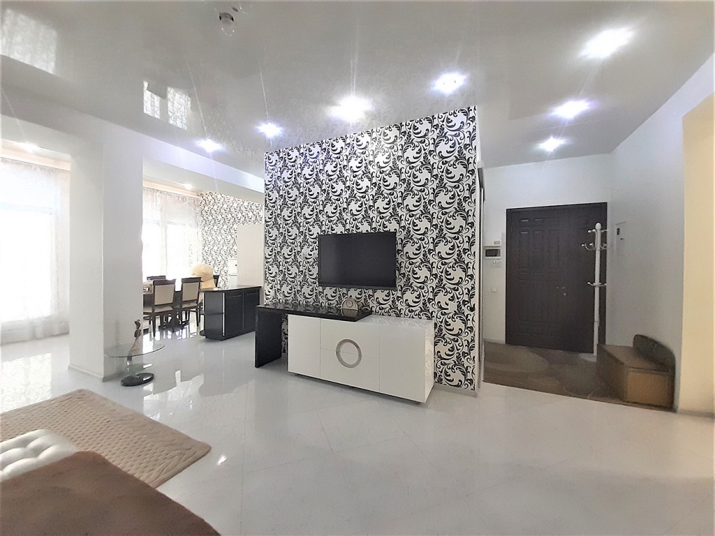 В квартире выполнен авторский ремонт с использованием качественных материалов. В гостиной панорамное окно во всю стену с тонированными стеклами, кондиционер, теплый пол, итальянские обои Roberto Cavalli, широкий диван, телевизор. Вместительная гардеробная в коридоре и угловой шкаф-купе в гостиной. Квартира с видеонаблюдением и сигнализацией. Установлены фильтры грубой и средней очистки воды, а также фильтр обратного осмоса. Встроенная кухня, холодильник, вытяжка, электрическая варочная поверхность и духовой шкаф. Остается встроенная мебель и техника, диван, тумба под телевизор (обеденный и спальный гарнитуры с письменным столом по договоренности). Перепланировка узаконена. Бонус: паркоместо во дворе.