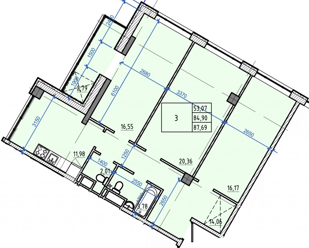 Загальна площа: 87.69 кв.м