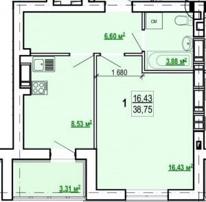Житлова площа - 16 м²;