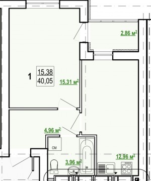 Загальна площа: 40 кв.м