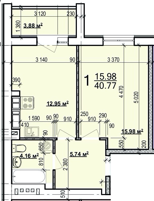 Загальна площа: 41 кв.м