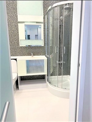 Загальна площа - 110 кв.м: кухня-вітальня, три спальні, два санвузли, вбиральня, балкон.