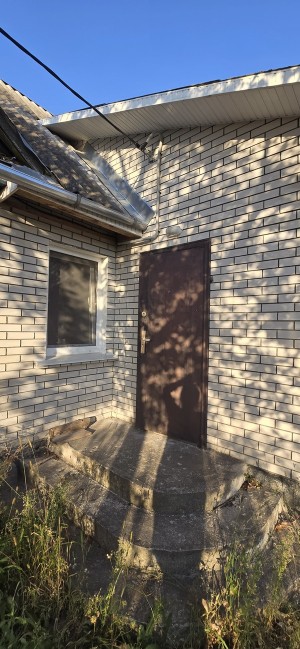 Продається 2/3 житлового будинку 10км від Житомира, на початку с.Садки, Житомирського району. Загальна площа 66м.кв., 2 земельні ділянки 7,5+24,2 сотки приватизованої землі. Нова узаконена прибудова коридор-4м.кв., санвузол-5,6м.кв. (залишилось тільки встановити сантехніку), кухня-15,3м.кв., гостьова 12,3м.кв., та 2 кімнати в дерев'яній частині 13+16м.кв.. Вода заведена в будинок, є криниця, вигрібна яма, світло 3 фази, поряд газ, грубки. В будинку зроблений ремонт, залишаються кухонні меблі. Окреме велике подвір'я, погріб, капітальний сарай на 2 секції, асфальтований під'їзд. Поряд проходить автобус, до АТБ 5 хвилин пішки. Документи готові до оформлення.